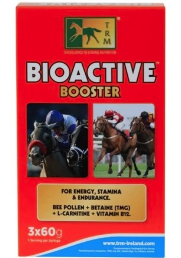 BIOACTIVE es un booster de energía en jeringa para antes de la carrera o competición para caballos de deporte en general. Contiene polen de abeja, uno de los maravillosos alimentos de la naturaleza que contiene más de 185 nutrientes. El polen puede incrementar la energía, resistencia y aguante de los caballos. Contiene TMG, un ingrediente natural que aumenta la capacidad de transporte de oxígeno de glóbulos rojos.