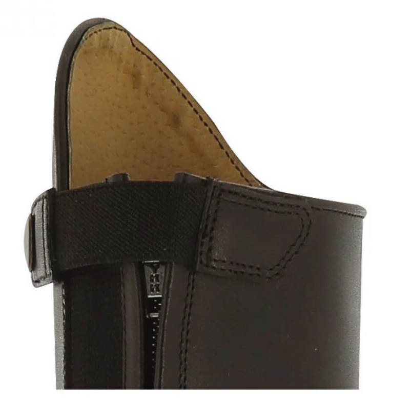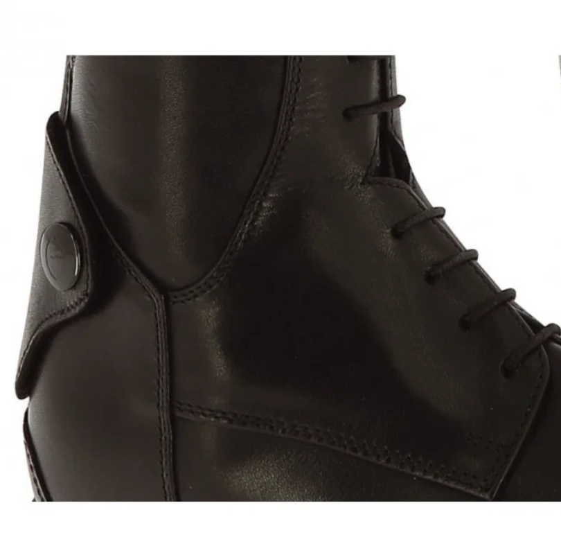 Botones a presión en la solapa de cuero del tobillo y en la lengüeta elástica en la parte superior.