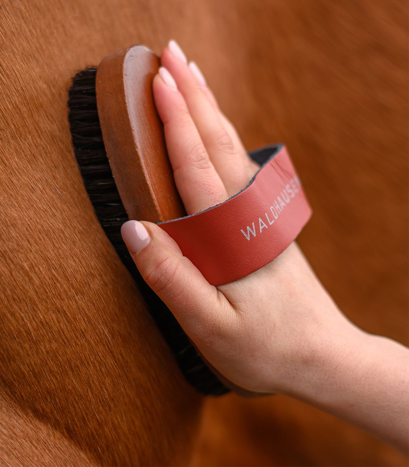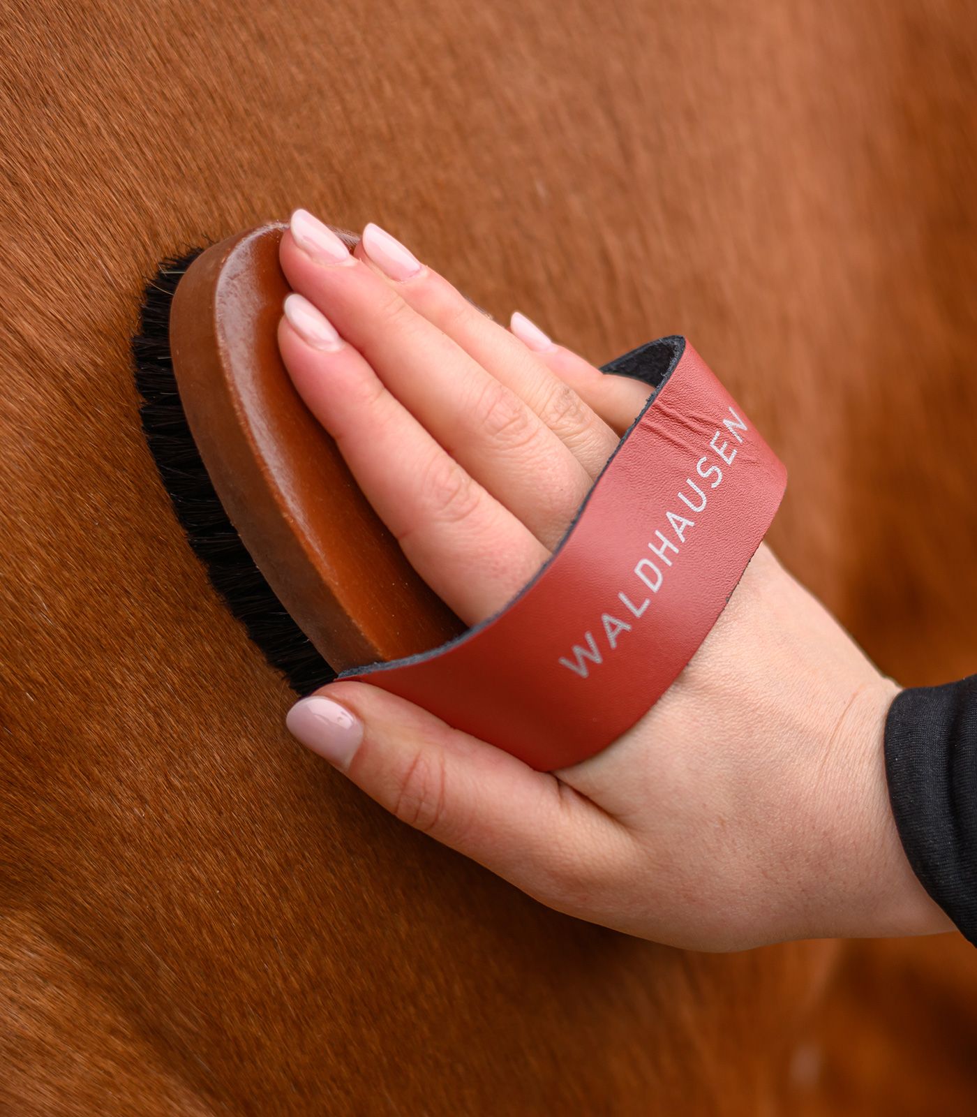Bruzas para caballos de madera auténtica con partes posteriores de madera natural, correa de cuero y cerdas de alta calidad.