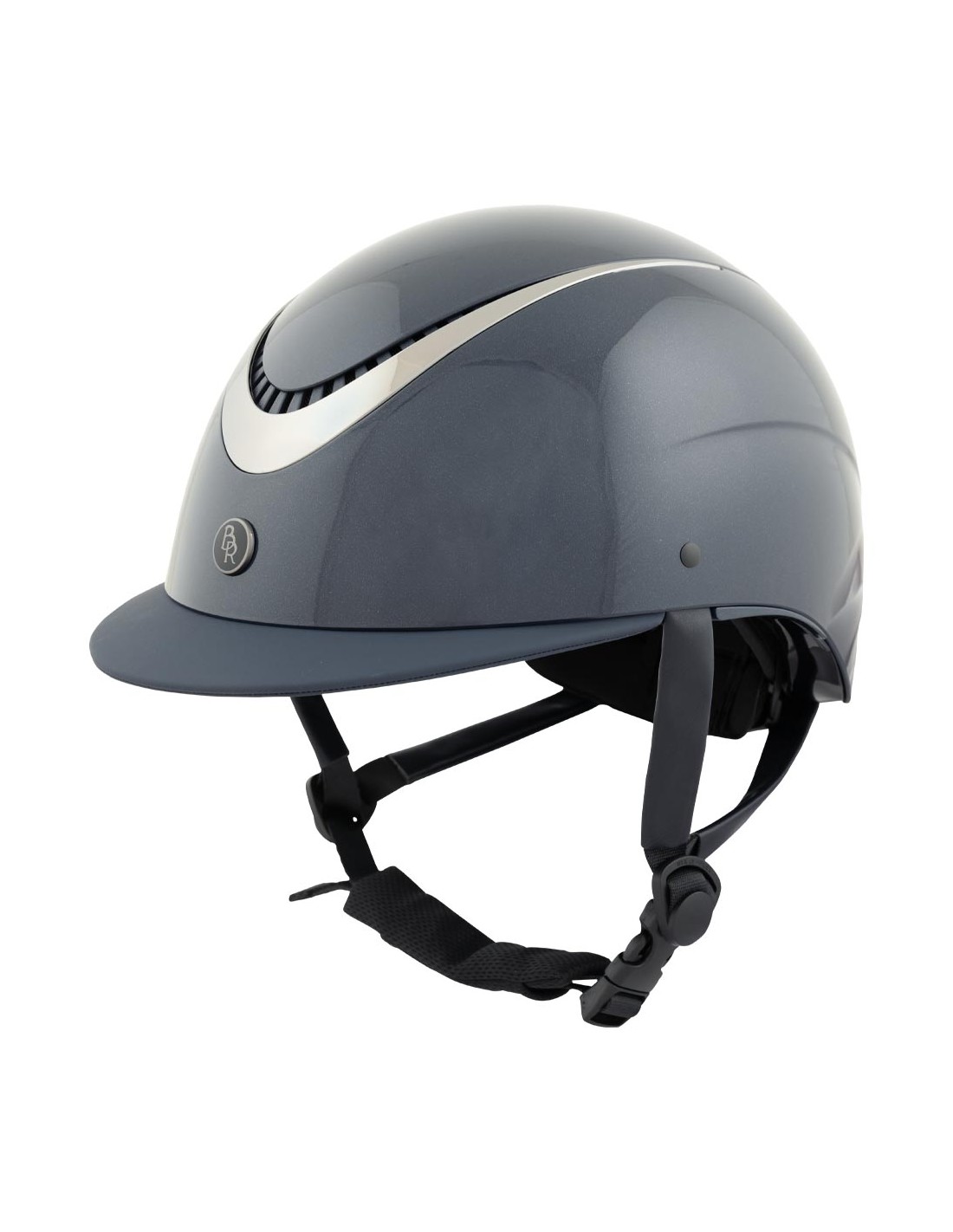 El casco de equitación BR Thèta Glossy tiene una carcasa ligera de ABS y está forrado en el interior con material Cooldry®. El forro interior es una combinación de Cooldry® y malla, que se seca rápidamente y mantiene la cabeza fresca. El forro es completamente extraíble y se puede lavar a máquina a 40 °C. La parte superior tiene un borde brillante y contiene orificios de ventilación que proporcionan una agradable sensación de frescor. El casco se cierra con la correa de la barbilla con hebilla de liberación rápida y protección Cooldry®. El casco cumple con la norma de seguridad EN1384-2023.