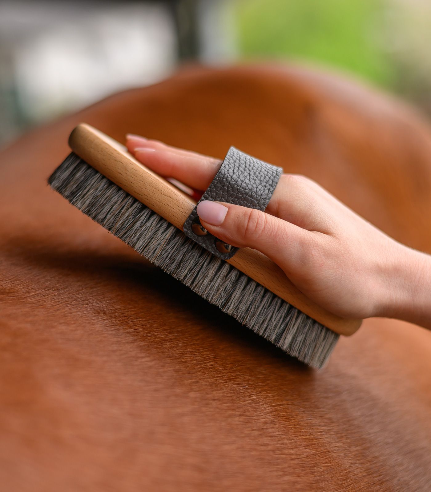 Esta bruza combina excelentes resultados de aseo con una experiencia de masaje relajante para el caballo. Gracias a la mezcla de cerdas naturales, la suciedad se elimina fácilmente desde lo más profundo y proporciona al pelaje un bonito brillo.