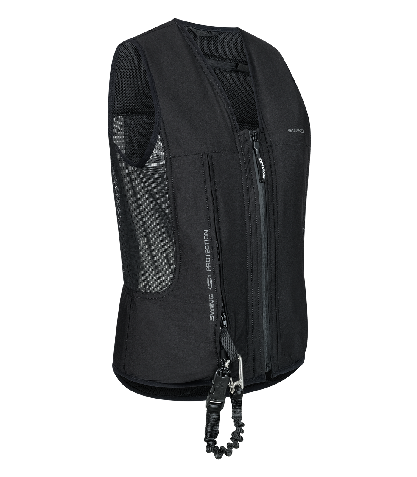 El nuevo chaleco airbag SWING P25 AIR establece nuevos estándares en los deportes ecuestres y ofrece un innovador mecanismo de protección que reacciona en segundos cuando es necesario. Probado de acuerdo con la norma actual NF S72-800:2022, cumple los requisitos más exigentes para los sistemas de airbag en los deportes ecuestres: para una mayor seguridad con la máxima libertad de movimiento.