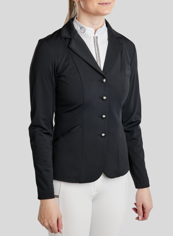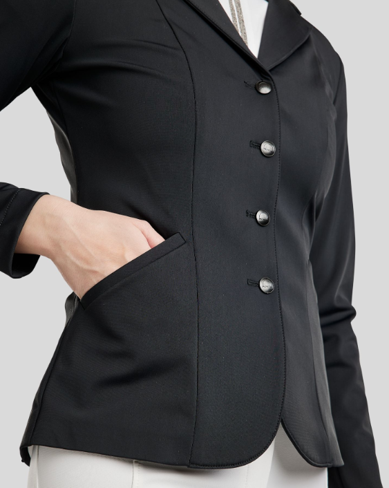 La chaqueta de competición Bonnie está diseñada para la amazona que quiere combinar un estilo sofisticado con funcionalidad técnica. Con su diseño elegante, ajuste femenino y detalles lujosos, esta chaqueta está hecha para impresionar en el campo de competición.