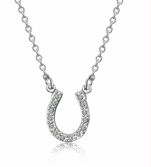 Collar de acero inoxidable con charm de herradura y brillantes.