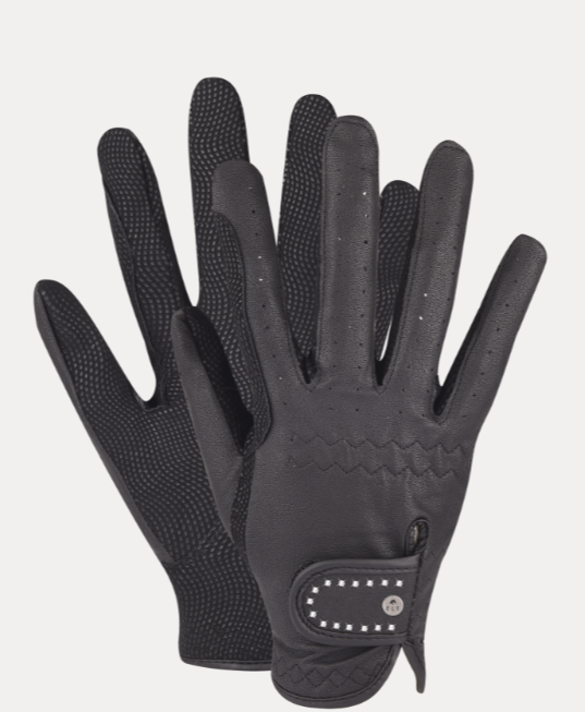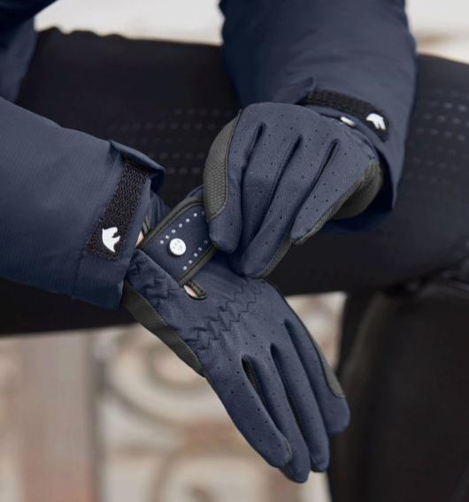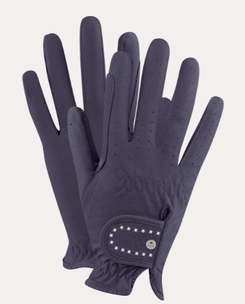 Guantes de equitación ligeros, flexibles y muy elásticos. Con solapa en el dorso con cierre de gancho y bucle. Tiene orificios de ventilación e interior particularmente antideslizante. Lleva refuerzo para riendas.