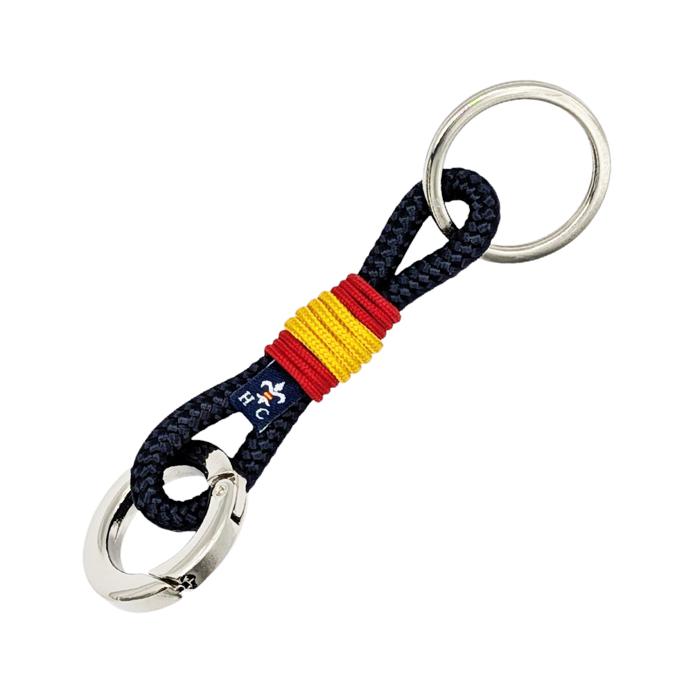 Llavero elaborado a mano con resistente cordón náutico de color azul marino.