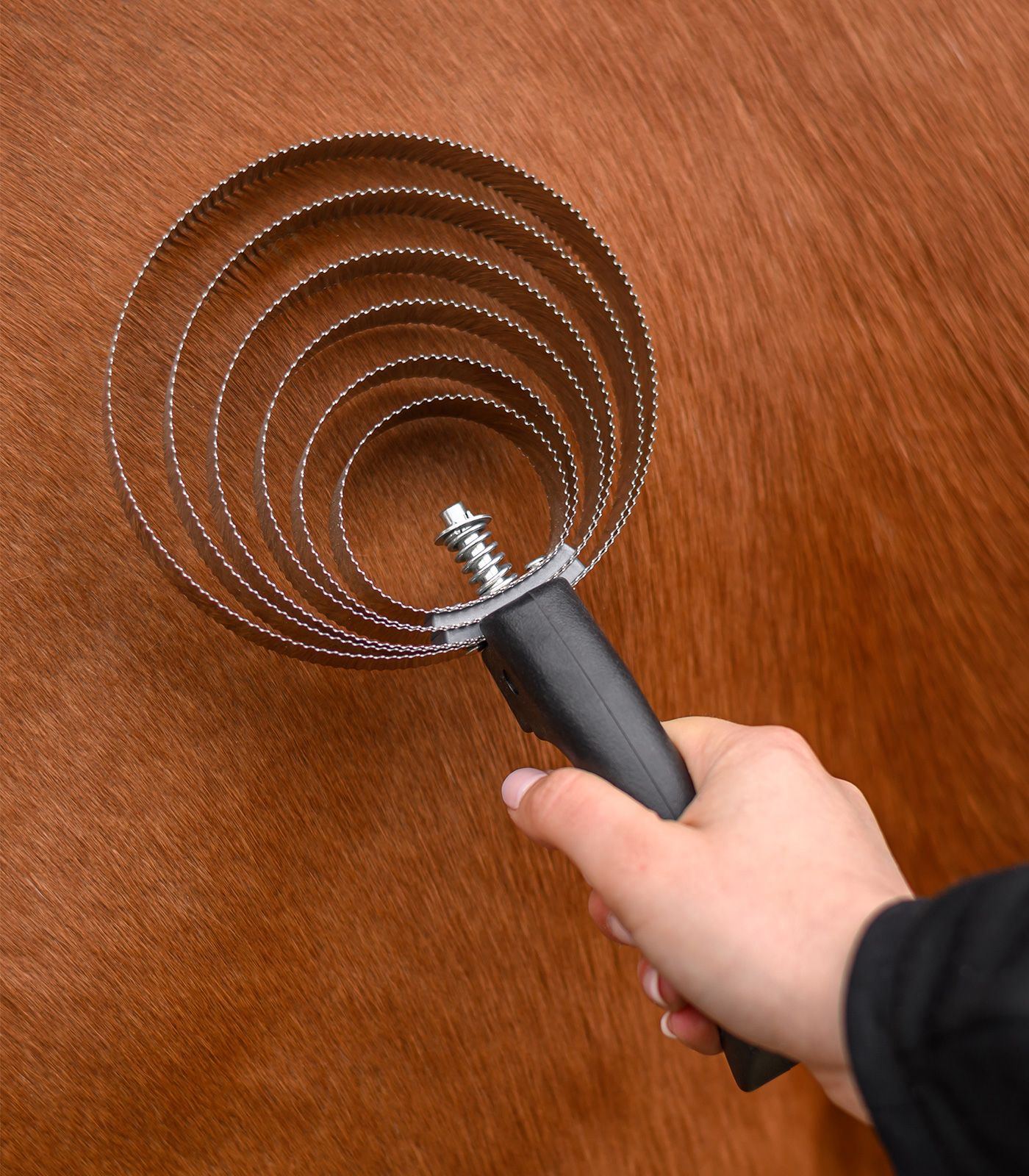 – Ideal cuando el caballo cambia de pelo y para remover residuos de cola.