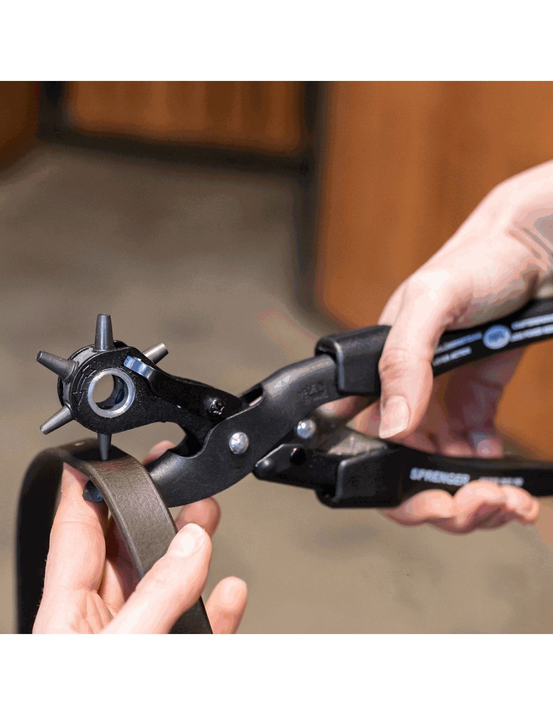 Sacabocados Sprenger Basic Profesional, es herramienta esencial en el kit de cualquier propietario o cuidador de caballos que busca realizar ajustes y personalizaciones en correas y otros accesorios de cuero.